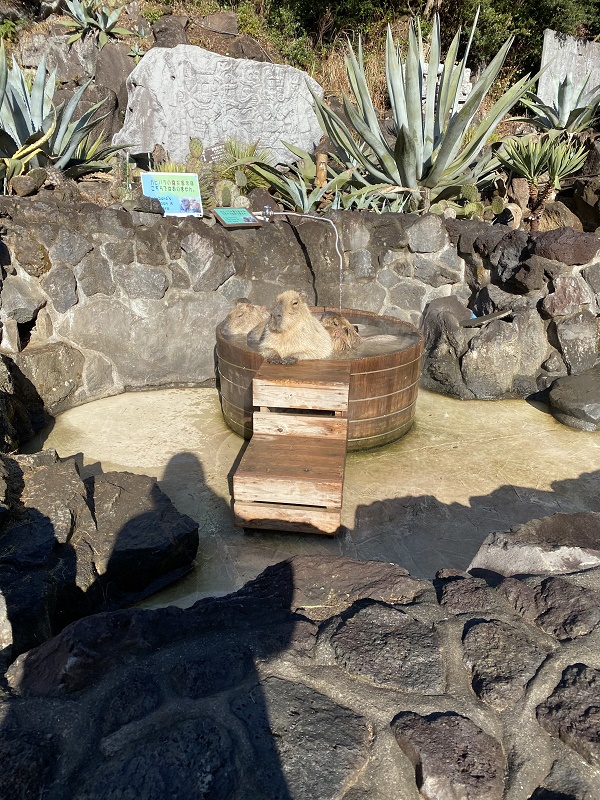 ある日の桶風呂・・ 気持ちよさそうに入っている中手前の1頭よく見てみると 全身浸かれなかったのかせめてお尻だけでもという感じで お風呂に入っていました(笑 思わず写真を撮ってしまいました! ほっこりした1日☺     遊びに来た際は露天風呂もいいですが 虹の広場の桶風呂も見て癒されてください!