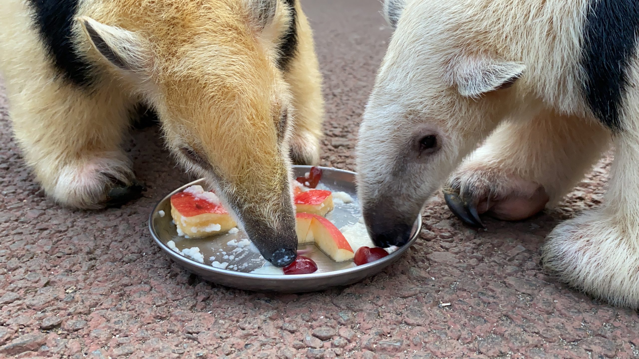 みなさんこんにちは!! 今日は何の日でしょうか~ そうです!ミナミコアリクイのケイくんの誕生日です!🧡 生まれたときはこんなに小さかったのにすくすくと成長してくれました!! かわいいですね~~~ ケイくんには担当特製バースデープレートをプレゼントしました!   妹のアンちゃんにもおすそ分け これからものんびりかわいいケイくんでいてね~~~💛