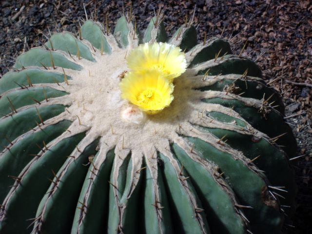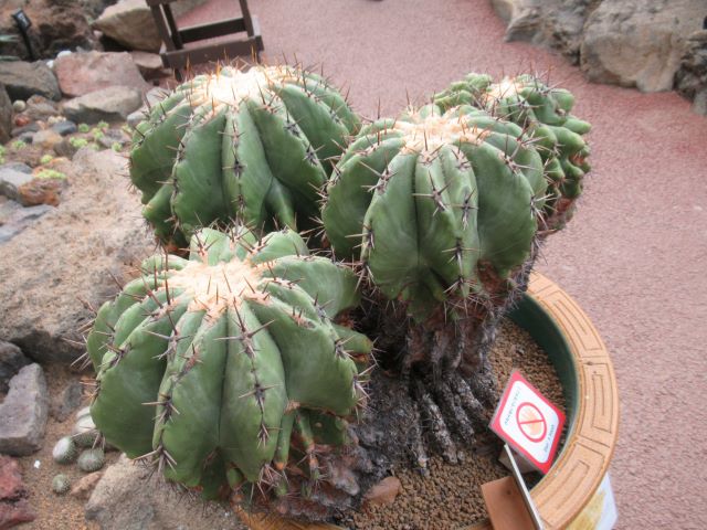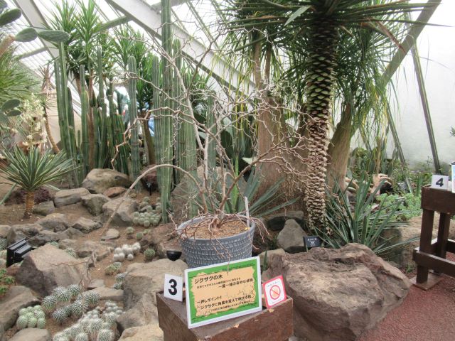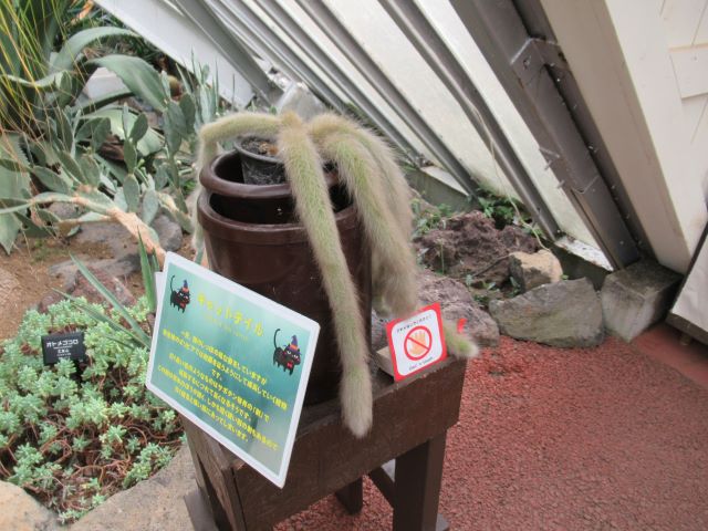 サボテン、そして多肉植物を愛する皆さん! 今年もとうとうやってきました♪  第5温室(メキシコ館)出口付近にて「第9回おもしろサボテン品評会」を開催しております!(パンパカパーン♪) 普段、寒さに弱かったり、小さすぎたり、デリケートすぎたり、形があまりにも特殊で、一般展示をされていない、本公園でもいわゆる秘蔵のサボテン・多肉植物たちを一堂に展示し、その中でも最もお客様の心をとらえることの出来た「栄えあるシャボテン!」をお客様の投票で決めようというこの企画! ついに今年で9回目を迎えることが出来ました💗   もちろん!今年もコロナ対策には十分に気をつけ、展示物のソーシャルディスタンス、展示場の消毒液の設置、シールによる簡単な投票方法などを実施して行っています。     さーて今年皆様の心を最もとらえることの出来る植物は果たしてどの子になるのでしょう。 今年もしっかりホームページでもノミネートされた植物たちの紹介をして参りましょう!   先ずは、エントリーナンバー①番 「巌(イワオ) (Echinocactus  platyacanthus=ingens)」 ど~です!この堂々とした姿♪ 今大会で一番大きな植物!直径は50㎝を超えます大きな鉢に入った4頭立てのサボテン。「巌(イワオ)」の名に恥じない姿です。     故郷はメキシコのイダルゴ州~タマウリパス州 雨の少ない平地に生えています。前に本の写真で見た所、背の低い灌木などが密集している所に一緒に生えているような感じです。 成長はとても遅く、その代わり長い時間をかけてとても巨大になるサボテンで大きなものになると、高さは2メートルを超え、幅は1.5m位になるといわれています。 寿命は長く、100年以上生きるといわれています。 以前の学名では エキノカクタス インゲンス(Echinocactus  ingens)と呼ばれたもので、本公園でも長い事この名を使っていましたが、今ではエキノカクタス プラティオカンサス(Echinocactus  platyacanthus)と改められることが多いようです。   姿に似合わず、花はなかなか可愛らしい鮮やかな黄色い花が咲きます♡ 無骨なイメージの巌ですが、自生地ではビスナガと呼ばれ、じつはその中身の部分をお菓子として食べることが出来ます(まあ!スィート♡) このビスナガを材料とした砂糖漬けのお菓子を「アシトロン(acitron)」というのだそうです。 キャンディーのようなお菓子で昔はメキシコでも知られたお菓子だったそうですが、100年を超えて生きる巌を材料とするのだから考えてみればずいぶん高くつくお菓子です。 ちなみに巌がもったいない(というか滅んでしまう)とのことから2012年から製造禁止になっています。(そりゃそうですね)           この巌、最初は丸っこい姿をしていますが年を取っていくほどに縦長に成長します。(本サボテンは少し縦長っぽいですね♪) 自生地の巌は厳しい砂漠の太陽からトゲで体を良く保護できるように南又は南西に傾く傾向があり、実際 砂漠の旅行者は、巌をコンパス代わりに使用するとの事です(マジか!)     今回出展したこの巌!頭の部分はこの通り緑で生き生きとしていますが、         根元の部分はまさに岩のように風格のある姿になっています。 この状態から察するに、今回出展したこの巌、おそらく100年近くは生きていると思われます。   巌といえば、日本の国歌にもなっている「君が代は千代に八千代にさざれ石の巌となりてコケの蒸すまで」(古今和歌集  詠み人知らず) という言葉を思い出します。 巌(イワオ)という漢字はもともと、「高く突き出た大きな岩」という意味があるそうで、まさにこのサボテンの特徴を表している名前だと思います。   とても魅力的な巌ですが、無骨な姿が災いしてこの品評会ではいまいちの人気(がっかり・・・)それでも けっこう投票してくれる人がいるところにこのサボテンの隠れた魅力を感じ取っている人もいるのだなと感動します。             さて続いては、エントリーナンバー②番 「雪だるま金鯱 (Echinocactus grusonii)」 本おもしろサボテン品評会、初登場! ど~です! まさに雪だるまのような可愛らしいこの姿♪  この大きさなら30年位は生きています。         上の部分はこの通り元気はつらつなのに、   下の部分は味わい深く枯れているようになっています。 このアンバランスさが、なんとも対照的で、お客様の目を引き、現在人気上昇中! 下の枯れたようになっている部分は立派に生きていて、上の新しく成長している部分にいまでも水や養分を提供しています。         さっきの巌(イワオ)の説明とかぶるようですが、じつはこの金鯱は一度、下のサボテンのように茶色くなって弱り枯れかけたことがあるのです。 その後、持ち前の生命力を発揮し、再び新しい部分が成長して大きくなったため、このようなダルマのような姿に成長したのです(まさに七転び八起きのダルマ!)   この説明どこかで聞いたことはありませんか?そう去年までこの品評会に参加していたあの60年物のダルマ金鯱の説明です。 昨年見事に一位に
