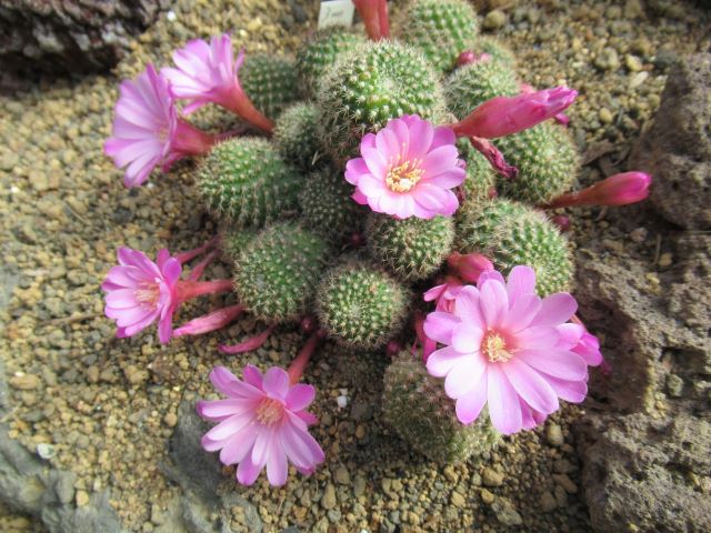 サボテンを愛する皆さん! なかなか複雑なゴールデンウィークとなっていますが、伊豆シャボテン公園内では、初夏のようなの日差しを浴び、さらにサボテン達がどんどん開花しています♪ 先ず紹介するのは! 第1温室(南アメリカ館)のレブチア・パープレクサ(Rebutia  perplexa)    名前の通りパープルな花をサボテン一杯に咲かせています。このサボテンがあるレブチアゾーンではほかのレブチア属のサボテンもどんどん咲いて、今この辺りはとても華やかです♡     続いて これまた第1温室(南アメリカ館)! 美装玉(ミソウギョク Notocactus  concinnus) 丸く愛らしい、ノトカクタスというサボテン達の仲間!福寿草を思わせる鮮やかなレモンイエローの花をサボテン本体が見えなくなるほどに咲かせています。 ノトカクタス属のサボテンは頑丈なので、初心者の方が育てるのにもおすすめのサボテンです♪   さらに続いて、またまた第1温室(南アメリカ館)! 世界の図(セカイノズ Echinopsis  eyriesii   f.variegata)   ご家庭でもよく育てている人の多い、短毛丸(Echinopsis  eyriesii)というサボテンの斑入り種。丸い球体に名前の通り、世界地図を思わせる黄色い斑が入っているなんともビジュアル的なサボテン! 花もきれいで、大きな薄いピンクの入ったラッパのような花を咲かせていました   そしてそして、これまた第1温室(南アメリカ館)! 金小町(キンコマチ Notocactus  werdermannianus)  南米ウルグアイが故郷の頑丈なサボテン!黄色い輝くような花をこれでもか!と咲かせていました♪ 写真で見るとまだまだつぼみがたくさんあるのがわかりますか♪ これからまた次々と花が咲きます。   最後に、第1温室(南アメリカ館) 全部、南アメリカ館じゃないか! 芳金丸(ホウキンマル Echinopsis  hybrid) というサボテン! 三つの黄色い花が見事に並んで咲いておりました♡   そう! あまりに花が咲いているサボテンが多すぎて、今回は一つの温室までしか、紹介できなかったのです!(すみません・・・) もちろん、他の温室でもたくさんの花が咲いておりますよ~~~。 それはまた次にご紹介♪(待っていてくださいね) 5月を迎えるにあたりこれからもどんどん花が咲く伊豆シャボテン動物公園!  訪れた際はぜひ、ご覧になって下さいね。(感染対策をよろしく♪) 植物エンターテイメント課 一同 記録:真鍋
