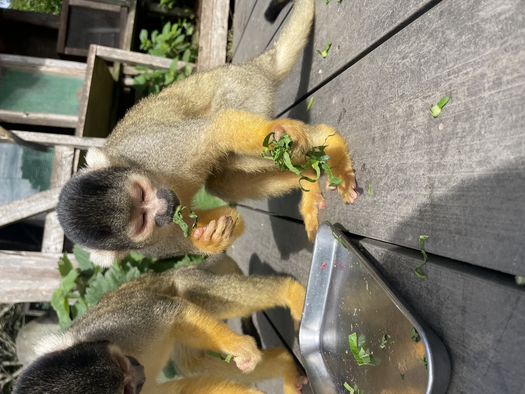 そして、リスザルは手で餌をしっかりと掴むことができます!