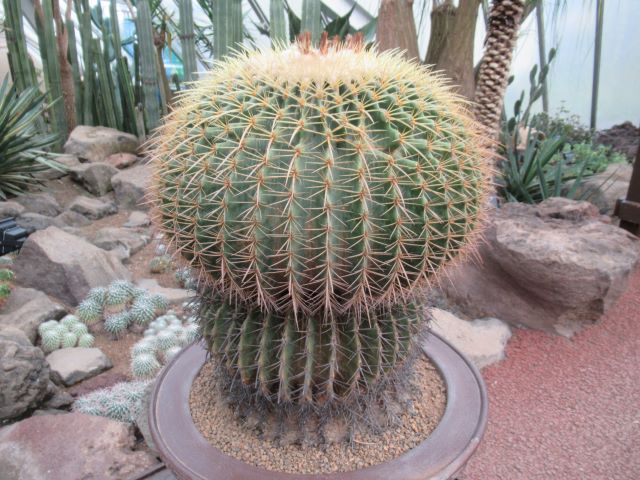 サボテンと多肉植物を愛する皆さん!(すっごく緊張しています!) お待たせいたしました!「第8回、おもしろサボテン品評会!」結果を発表いたします! パ~ッパラパッパッパッパ♪  パ~ッパラパッパッパッパ♪ パ~♪ ♪   普段、寒さに弱かったり、小さすぎたり、形が個性的過ぎて一般展示には向かなかったりと様々な理由で常設展示出来ない本公園秘蔵のサボテン・多肉植物を芸術の秋にちなんで一堂に展示し、その中でもどの植物が最もお客様の心をとらえることが出来たか?いわゆる一番人気の「栄えあるサボテン」をお客様のご投票によって決めよう!  というこの企画、早いものでもう8回目となりました。 (このフレーズも言い慣れてきたなあ~・・・・・♪)   今年も、コロナ対策を踏まえ、展示方法、投票方法に工夫を凝らし感染予防を施し、何とか無事終えることが出来ました♡(感無量!)   さ~て♪、それでは今回、皆様の心を最もとら得ることの出来た植物を発表いたしましょう!(ドキドキ・・・)   それでは発表いたします!「第8回 おもしろサボテン品評会」今回最も皆様の心をとらえることの出来た植物は!                     エントリーナンバー④番、金鯱(Echinocactus grusonii  だるまさんタイプ 通称:ダル金) 1,128票   この植物でした~~~~~~!  パ~ッパラパッパッパッパパ~♪     ついにやってくれました♪ 今回、最もお客様の心をとらえることの出来た一番人気のこのサボテン! なんてことはない、ただの金鯱なんです(その割には大きいですが・・・・)この金鯱、じつは昔一度死にかけて成長が止まってしまったことがあります。その後見事に復活し♪ 再び成長を開始して大きくなったために真ん中がくびれただるまのような形に育った、という訳です。(まさに七転び八起きのダルマ!)          この金鯱(ダル金と呼びましょう!)は本おもしろサボテン品評会、最多出場!いぶし銀の魅力の個性的な形からいつもいいところまで行くのですが、他の個性的な植物に押され、いつも2位~3位どまり(がっかり・・・・)    それが今年はついに一位を獲得することが出来ました♡(やった~~~♪ おめでとう!)   この品評会を通して、しっかりこの子も成長し、毎年花を咲かせては頭につける実の数が増えています(写真の茶色く飛び出している部分が実の部分、中には黒いゴマ粒のような種がたくさん入っています)ちなみにこのサボテンの年齢は60歳くらいです。     私たち、植物スタッフにも、植物の強い生命力、生きる意欲が伝わってくると共に、植物を育てる難しさ、あきらめないことの尊さを教えてくれるサボテンです。 ところでこのだるま型金鯱(通称ダル金!)今回が、最後の出場(ガーン!・・・) 来年は別のタイプの子に出場枠を譲って、また次の展示の時までしばしお休みすることになります(必ずまた展示するからゆっくりまた大きくなってね♪)   さて、来年はどんな子が登場するのでしょう! 楽しみです♡       さ~て続きまして第2位の植物は! エントリーナンバー⑩番、「リトープス(Lithopus  、ハマミズナ科)  略して「リト丼」! 920票   おお!美しい・・・  さあ~上からいきますよ~~~♪ 白薫玉(ハククンギョク)、白花日輪玉(シロバナニチリンギョク)、富貴玉(フキギョク)、これまた白花日輪玉(シロバナニチリンギョク)、柘榴玉(ザクロギョク)、黄微紋(オウビモン)、網目寿麗玉(アミメジュレイギョク)、網目巴里玉(アミメパリギョク)の8株のリトープス! 全部まとめて、通称「リト丼」!       一つ一つのリトープスによって植物の色や模様が全く違う!芸術家が苦心を重ねて作出した陶器のようなその美しさから「生きている宝石」とも呼ばれています。今回はその模様の一つ一つをじっくり見ていただだく為、少しコンパクトにまとめあげています。 この美しさが皆様の心をひいて、2位の高投票となりました。 ちなみにこれは「網目巴里玉(アミメパリギョク)」  名前も優雅でしょう♪     このリトープス、湿気の多い日本では蒸れないようにこのように地面から飛び出して植えられていますが、故郷の南アフリカでは頭の上だけを残し、ほとんど地面にめり込むように生えています。   リトープスが生えるのは、年間降雨量が250㎜以下の砂礫が広がる岩砂漠、とにかく水を欲しがる草食性の動物にとってその姿はとても魅力的な食べ物に見えることでしょう! このリトープスの魅力的な色や模様は、その場所の石の色に合わせているといわれています。つまり草食動物に見つかりにくいように「擬態」的な役割を果たしているという訳です。実際、地面にめり込んでいるこの植物を周りの石と見分けながら探すのはとても困難といわれています。 ちなみに地面にめり込んでも、この植物の上の模様の部分は透明な窓のようになっていて、そこから光を取り入れ、地面の下でも光合成が出来るといわれています。   またこの植物は「脱皮」のような成長をすることでも有名!春3~5月頃、外側の古い葉がしおれて真ん中から新しい葉が