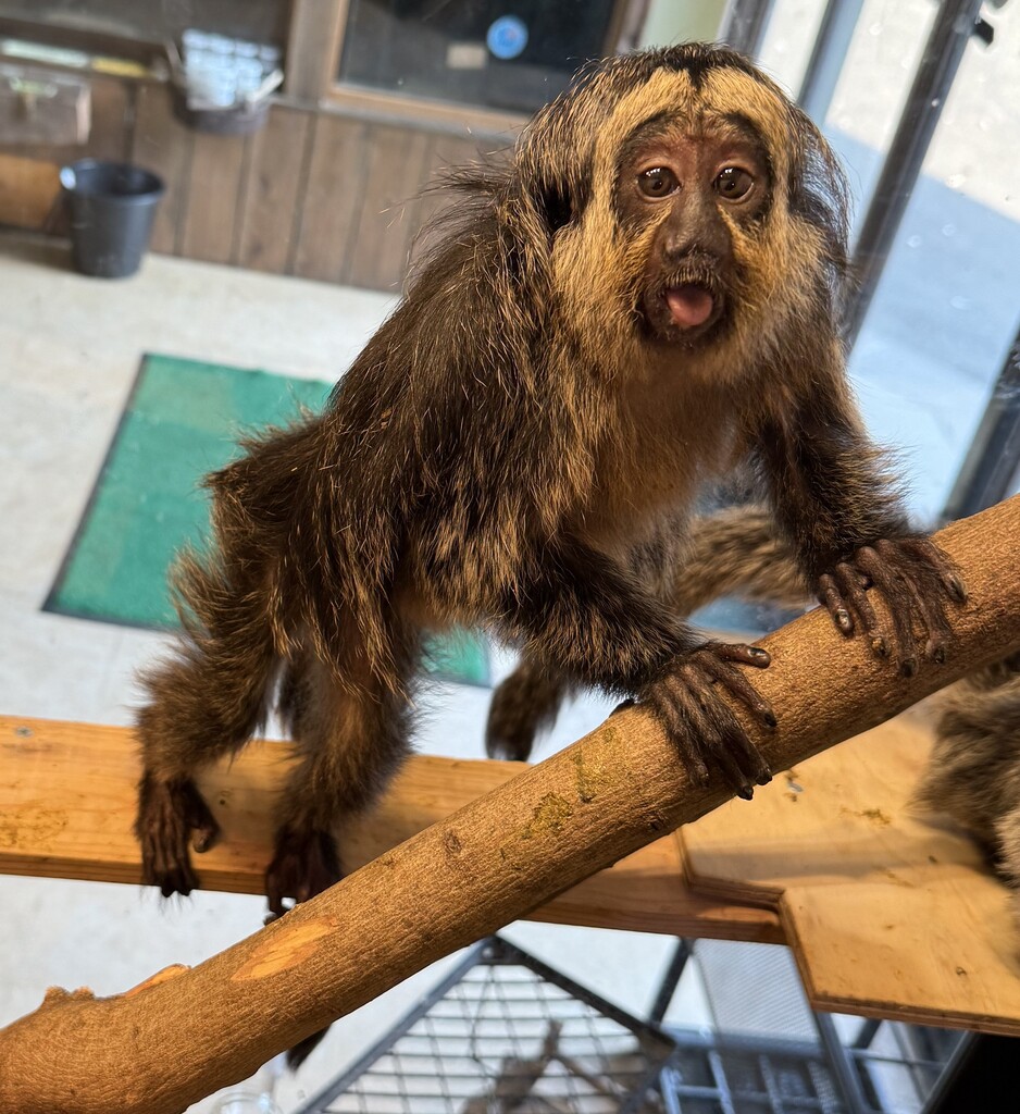 当園にいるシロガオサキはまだ幼いですが、成長とともに顔がもっともっと白くなります!!