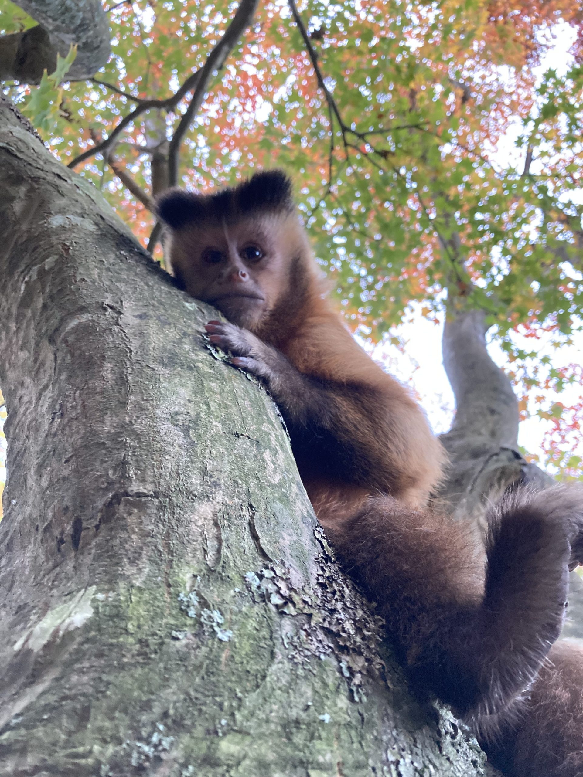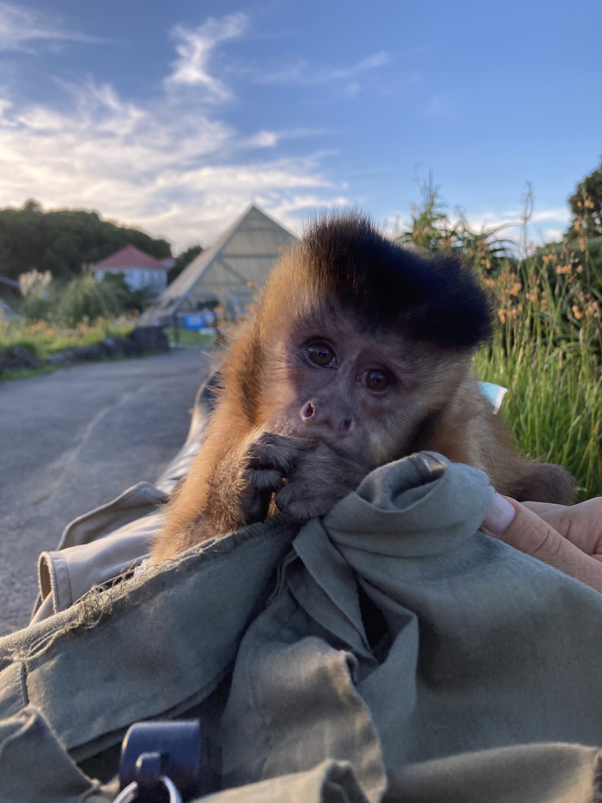 ですが寒さの苦手なRubyは外に出ると、紅葉を楽しむこともなくもっぱら温もりを求めてくっつく毎日です。 座っている私の膝の上でくつろぐ時も 寝そべった私のお腹の上で寝転ぶ時も 必ずRubyがすることがあります。 それは私のズボンのベルトを外すこと。 外すこと自体は器用なフサオマキザルですから何てことありません。 ですがRubyの目的は外すことではなく 外したことでより寝心地が良くなること。 外れにくいベルトの時は外してくれとベルトを引っ張って伝えてきます。 そして外し終えると満足しそこに寝そべります。 そして私の素肌に触れながら寝るのがRubyのスタイルです。 ですので結果、いつもRubyは上半身を私のシャツのなかにもぐらせ、 下半身はベルトがなくなったよりフラットなお腹の上で寝る体制になります。 人間と一緒なんだなと思います。 人肌に触れているとそのぬくもりに安心する、寝る場所は金物でごつごつしていたら寝にくいじゃないか… そんな感じです。