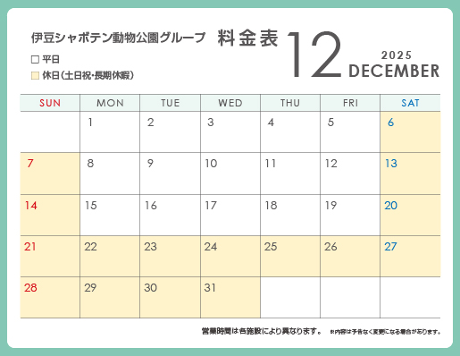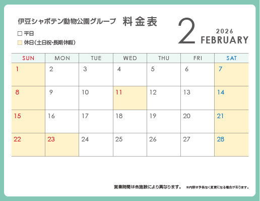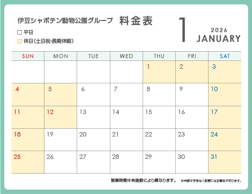 Groups are allowed to enter the zoo without a reservation, but please contact us in advance to facilitate your admission at the zoo entrance. Please feel free to contact the Group Reservation Center (TEL: 0557-51-5553) to make a reservation.